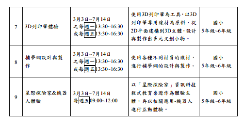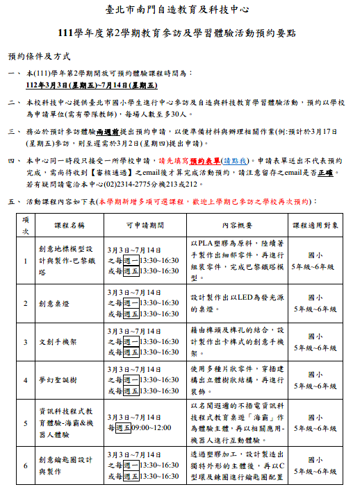 三、相關體驗學習之課程內容及預約方式詳如附件。