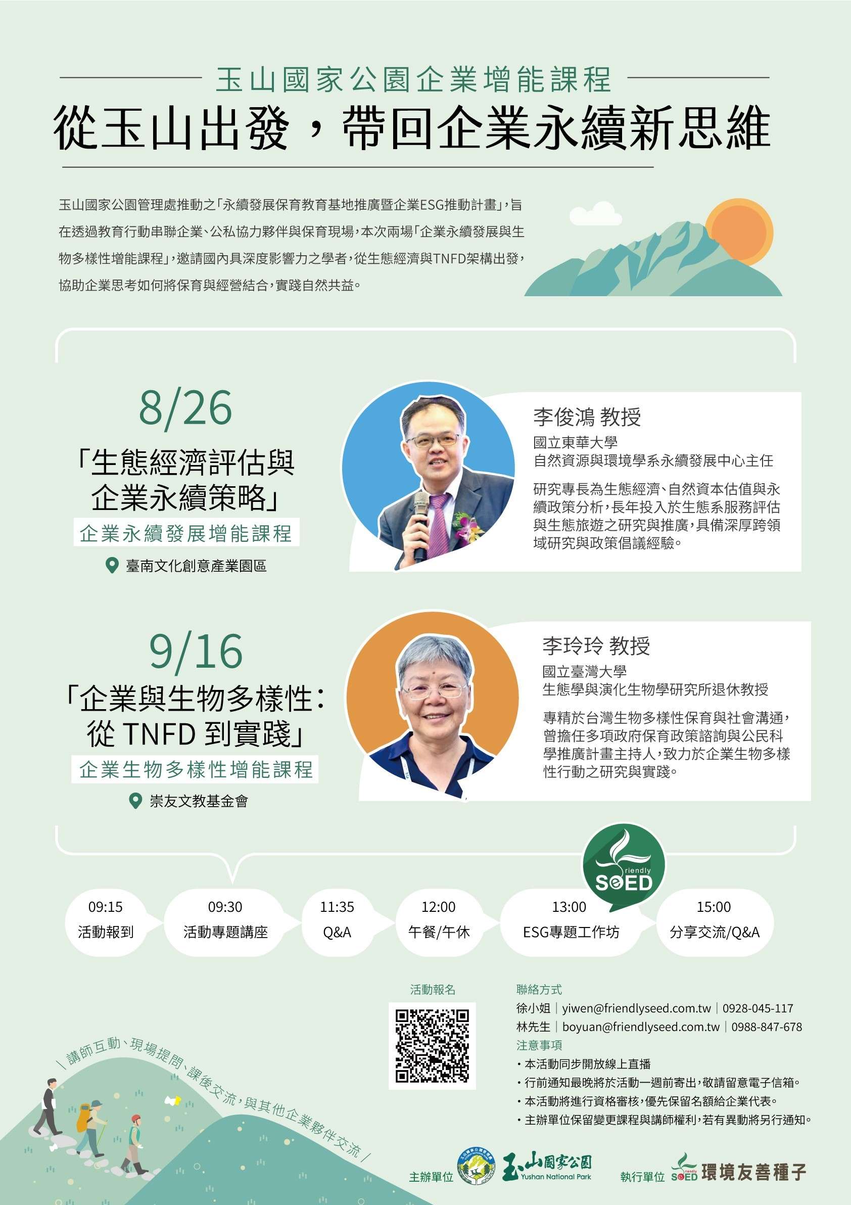 二、旨揭活動係玉山國家公園管理處為因應全球永續發展 (SDGs)目標,爰以「永續保育教育聯盟」共同推動各項保育工作,並結合企業責任及ESG目標,盼引起各界共同參與。
